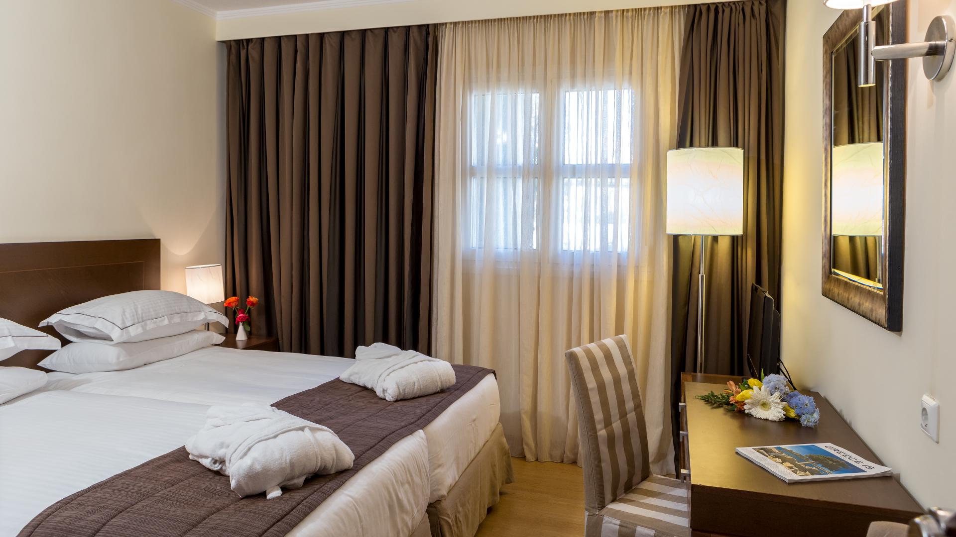 Das Appartement besticht in gedeckten Grau- und Brauntönen und verfügt über ein großzügig konzipiertes Schlafzimmer mit zwei Betten, sowie einen separaten Wohnbereich mit komplett ausgestatteter Küche und Essbereich, sodass Sie Ihre Lieben jederzeit mit Ihren kulinarischen Talenten verwöhnen können. Außerdem gibt es hier ein Schlafsofa bzw. Etagenbett, auf dem bis zu zwei Kinder bequem schlafen können. Damit bietet sich dieses Zimmer als ideale Wahl für Familien mit kleinen Kindern an, aber auch für Paare, die sich etwas mehr Freiraum und Privatsphäre wünschen.